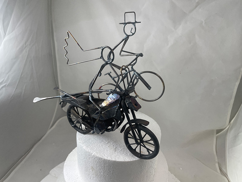 Bride on motorcycle and groom on a bike cake topper
